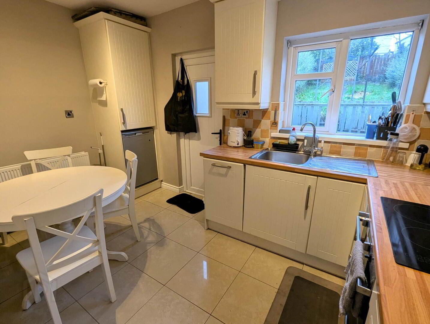 Downstairs, the living room is with open fire is filled with natural light by a large window framing the river and town. The cosy kitchen and dining area opens to the rear, with access to a raised patio, garden shed, and a long private garden, A main bathroom with bath completes the ground floor. Upstairs, there are four well-proportioned bedrooms and a second bathroom with electric shower. The front patio is enclosed and elevated overlooking the river erne with off street parking.