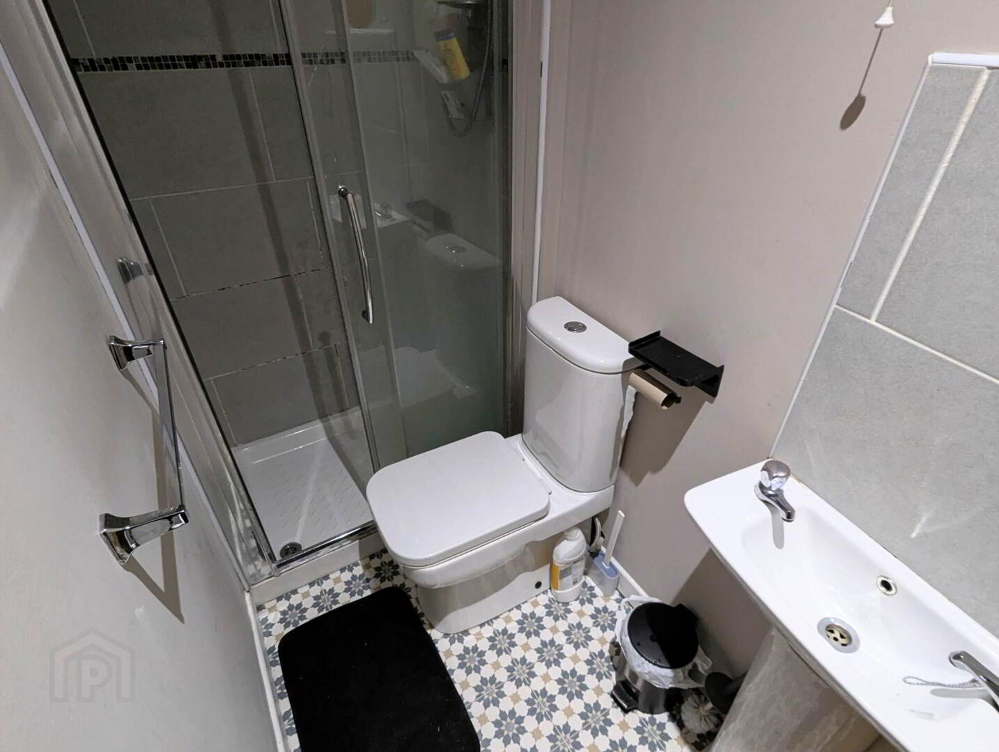 Wooden flooring, w/c, wash hand basin, shower
