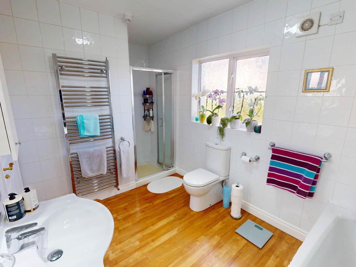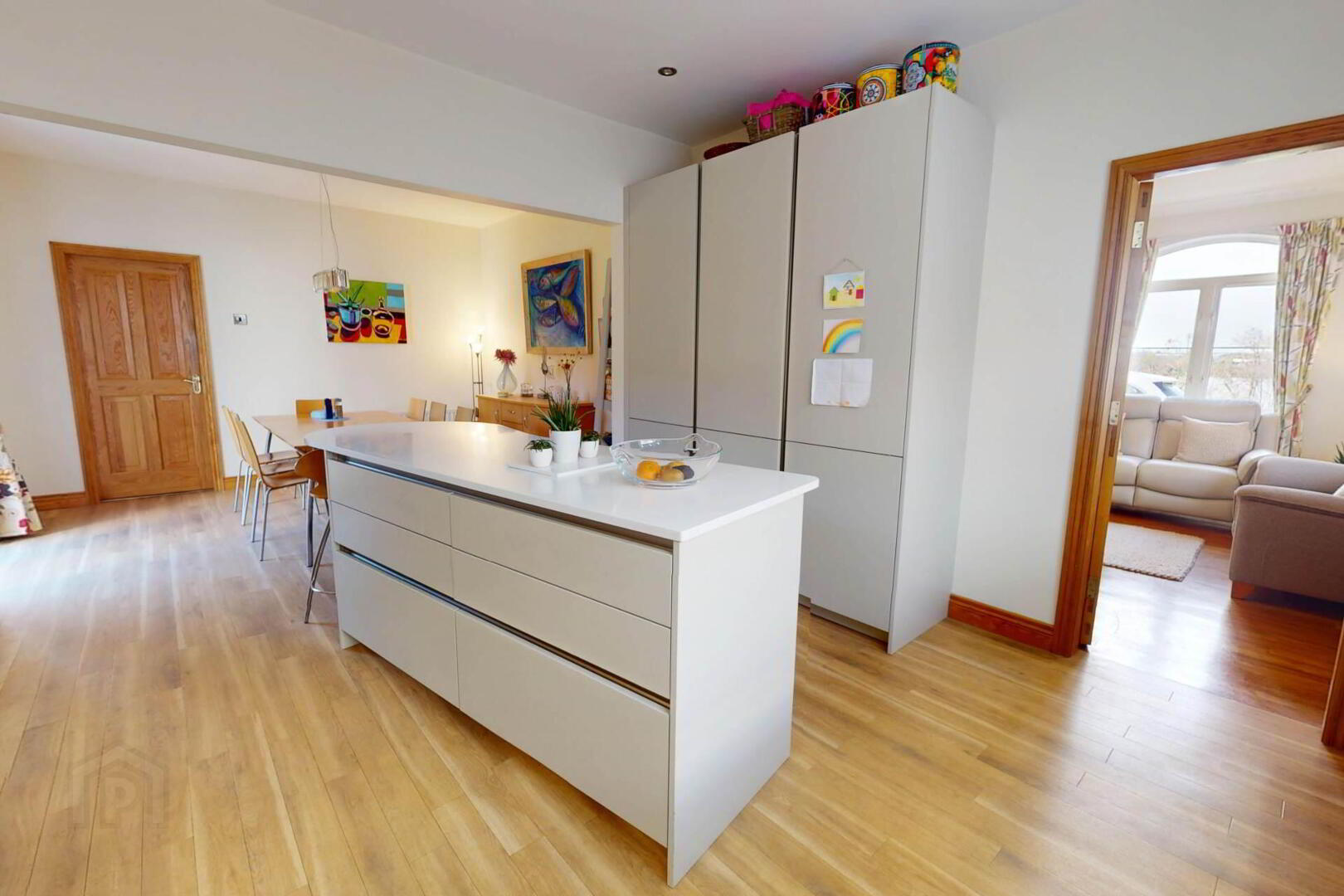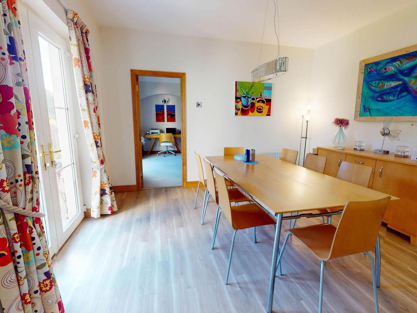 2,800sq.ft arranged across two generous floors, the accommodation blends comfort, practicality, and modern family living. At its centre lies a spacious open-plan recently renovated kitchen and dining room, an inviting, light-filled hub of the home. Two adjoining reception rooms add versatility, with a layout that flows easily for everyday life and entertaining. The ground floor also includes a utility, toilet, and integral garage.