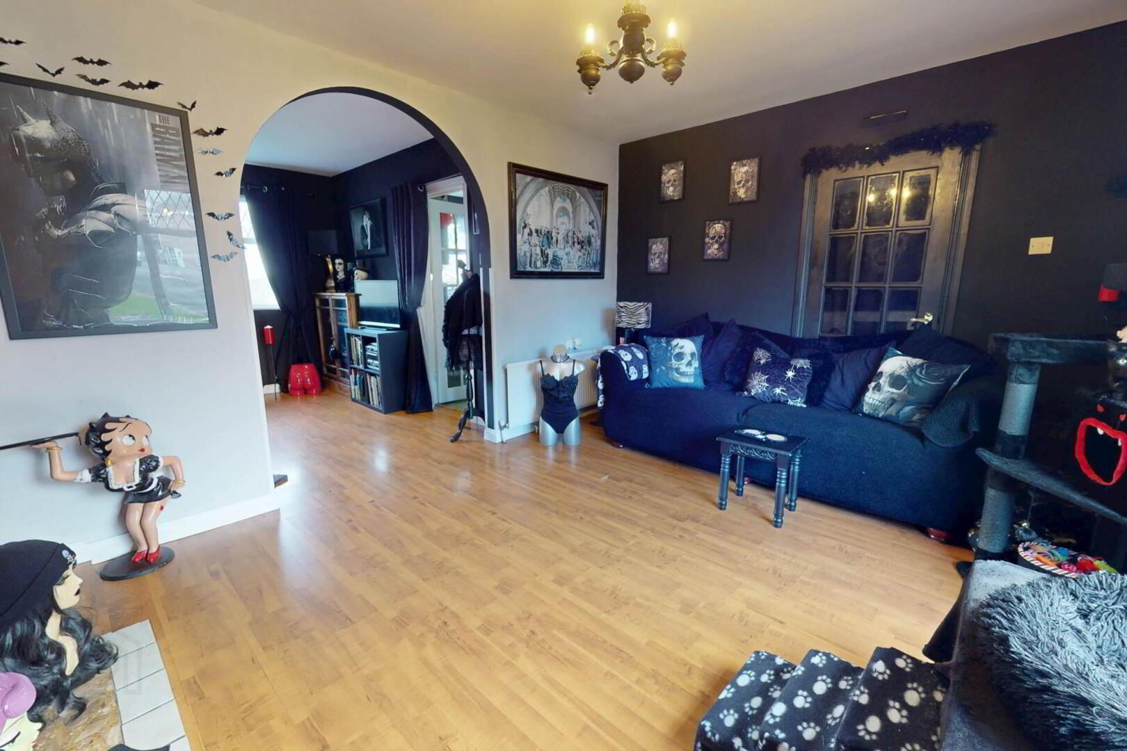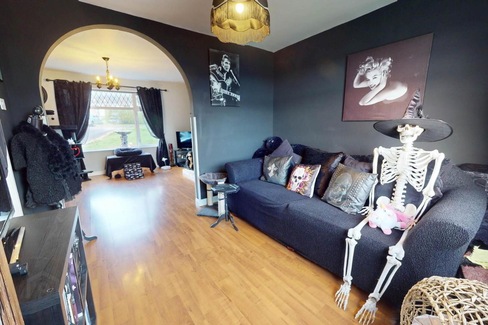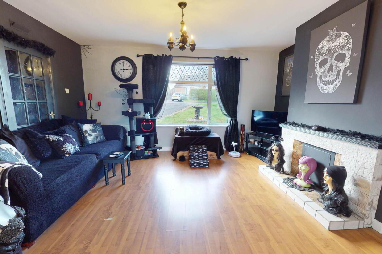Laminate Wooden Flooring, Fireplace with Cast Iron Inset, Tiled Hearth and Surround;