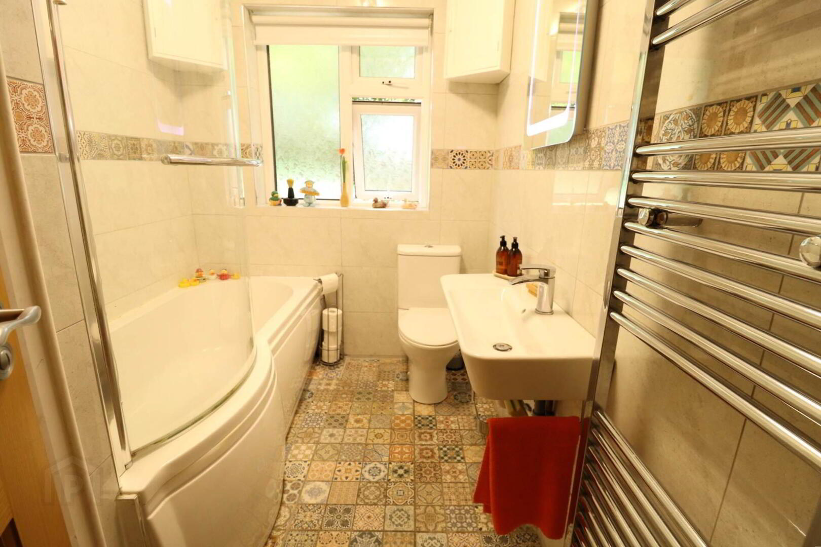 Inside, the living room is bright and inviting, centred around a feature fireplace and finished in soft neutral tones. The adjoining kitchen/dining area is well finished with side door to access the rear. All recently renovated including electrics, plumbing and heating. The property includes three well-proportioned bedrooms, all set off the main hallway, along with a modern family bathroom. The third bedroom offers flexibility as a study, dressing room or guest space, depending on your needs.