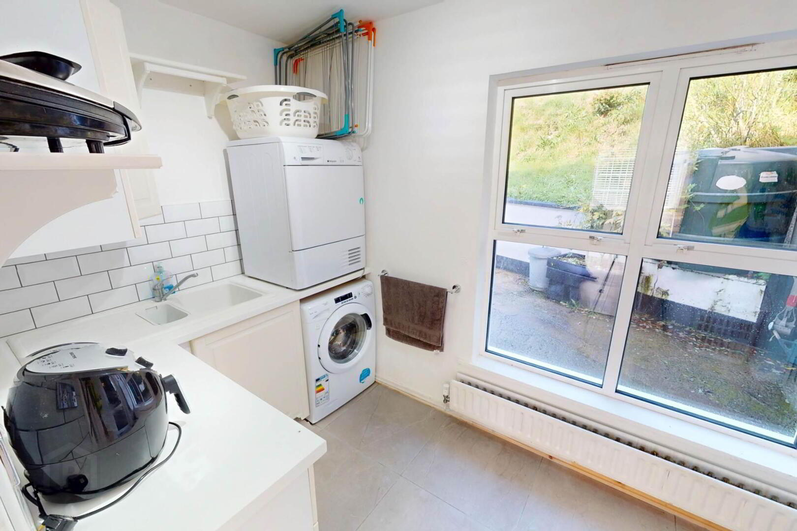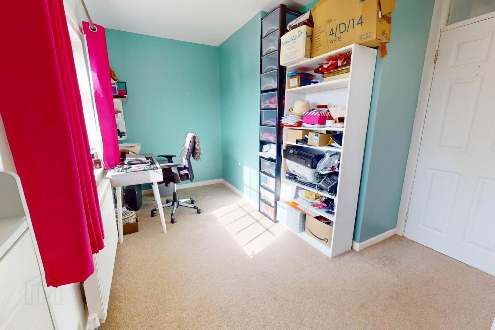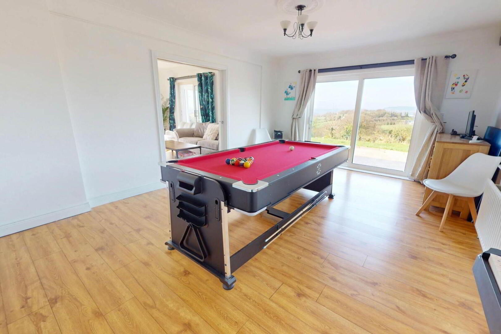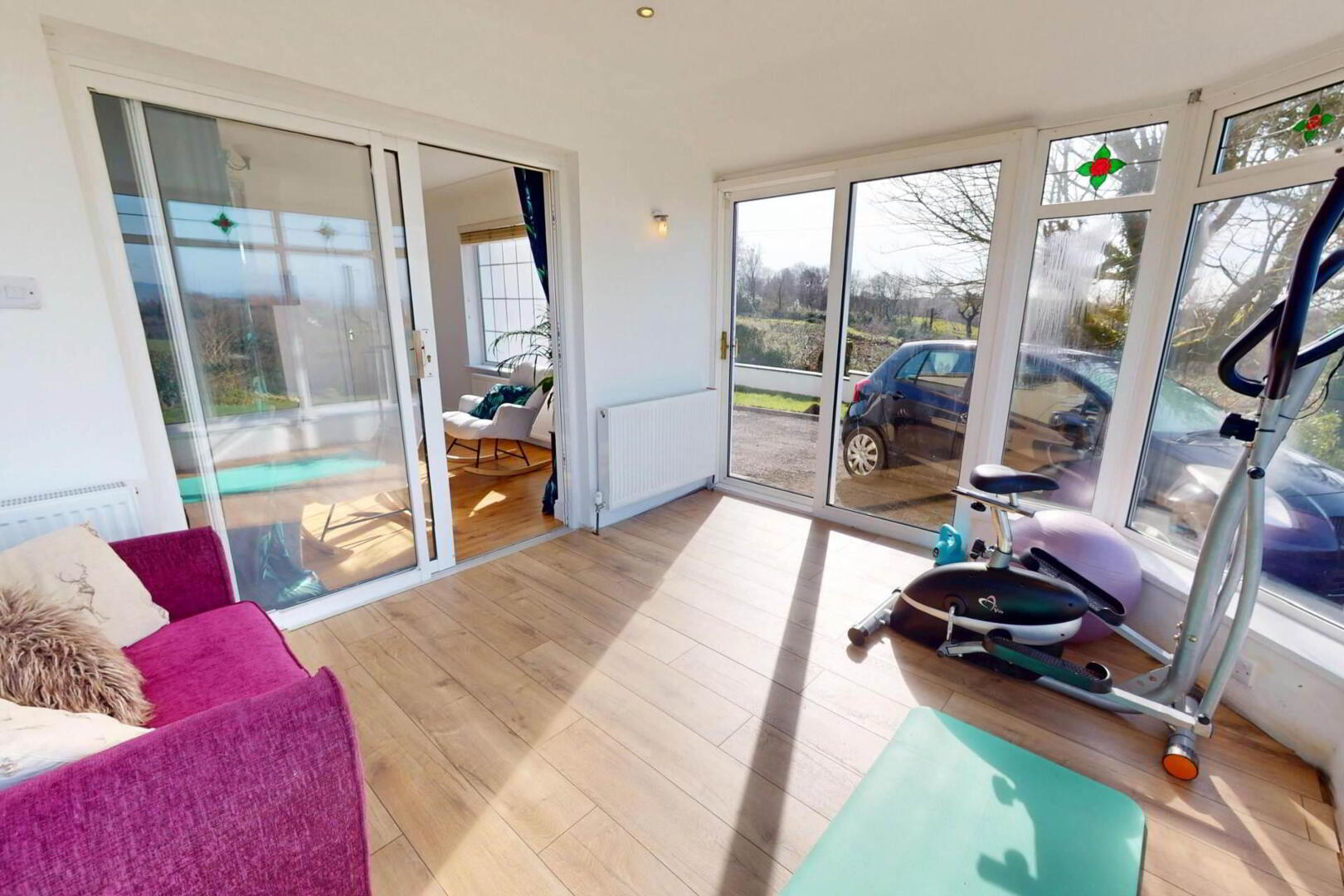 The ground floor centres around a comfortable sitting room with a back boiler stove, opening directly into a conservatory that captures the sun throughout the day. A further reception room provides flexible space for a playroom, office or second lounge, with sliding doors leading out to the garden.