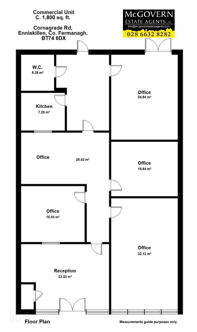 The property is ideally located within a busy commercial area, surrounded by a range of established businesses, including a popular SPAR shop and diner, and close to the new retail park. Situated just off the main Cornagrade Road, the unit enjoys excellent visibility and high volumes of passing traffic, and further benefits from ample on-site parking, making it an ideal opportunity for office or similar use.