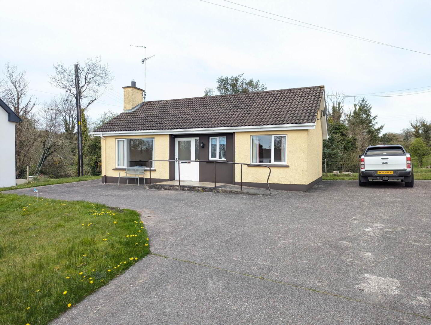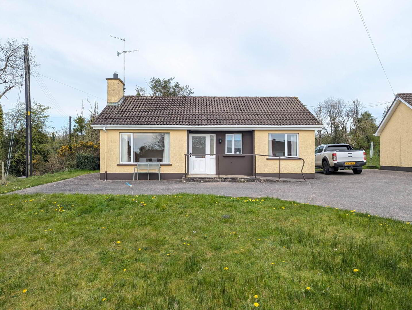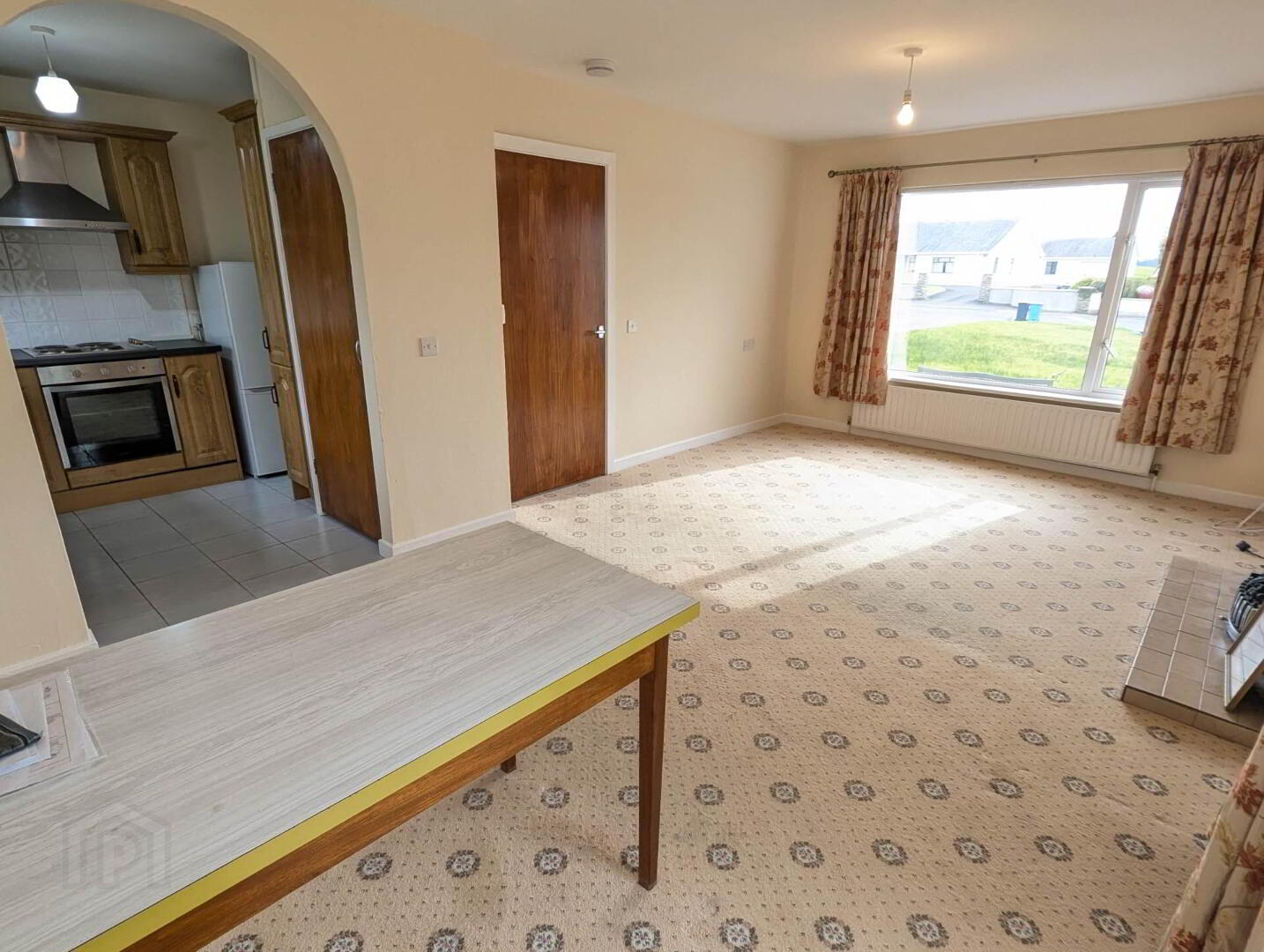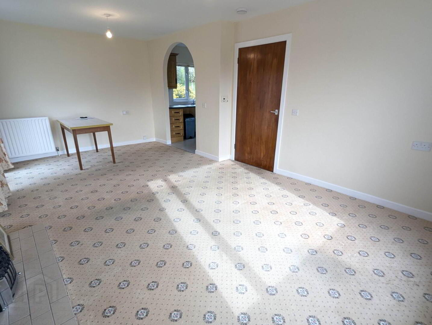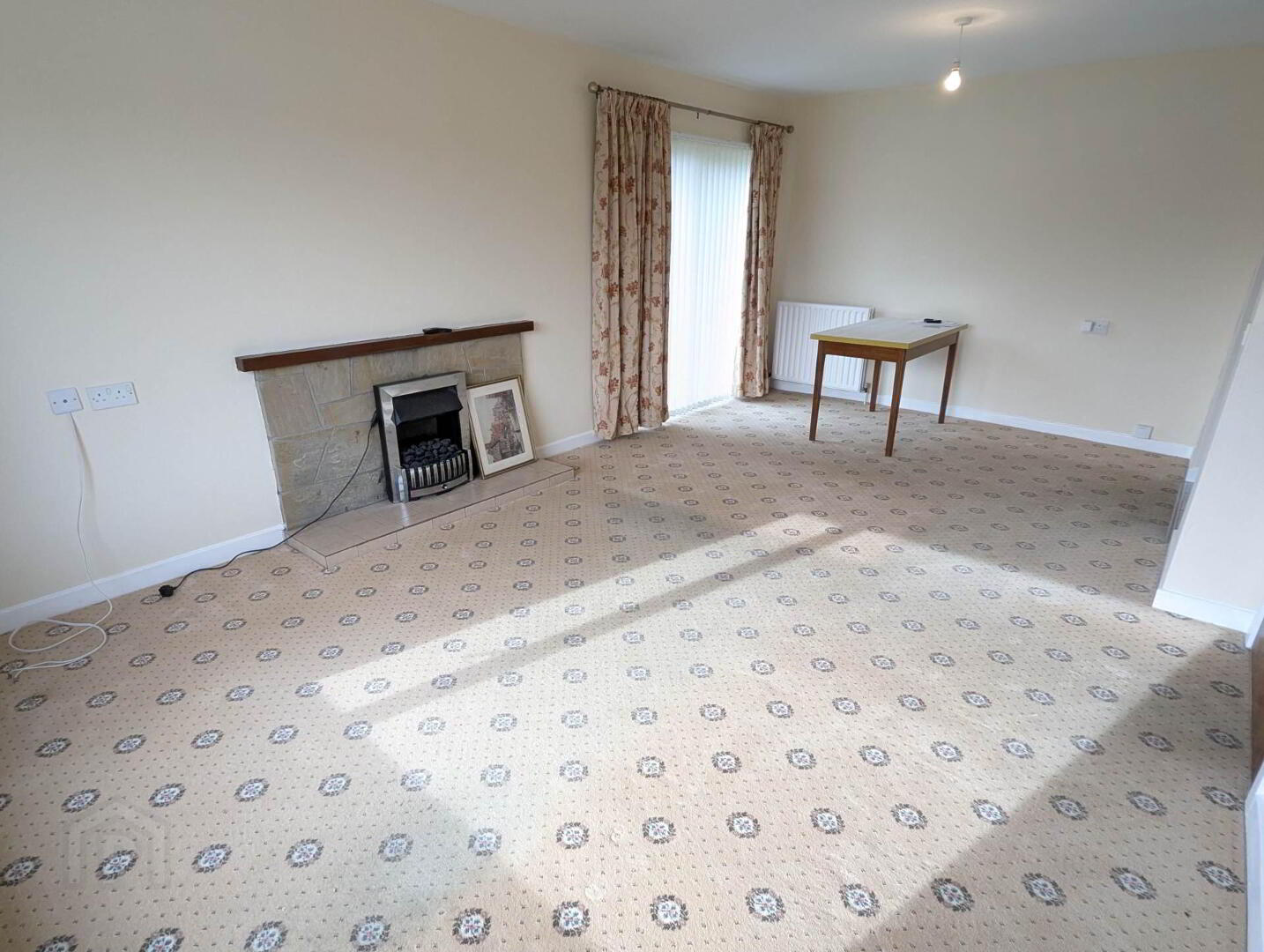 Inside, the property features a bright and welcoming living room with a fireplace, a fitted kitchen with ample storage, two well-proportioned bedrooms, and a family bathroom. Natural light flows throughout the home, creating a warm and airy feel, while the practical single-level layout ensures easy everyday living. The layout is both functional and comfortable, making it well suited to a range of tenants, all while enjoying a quieter setting within easy reach of local amenities.