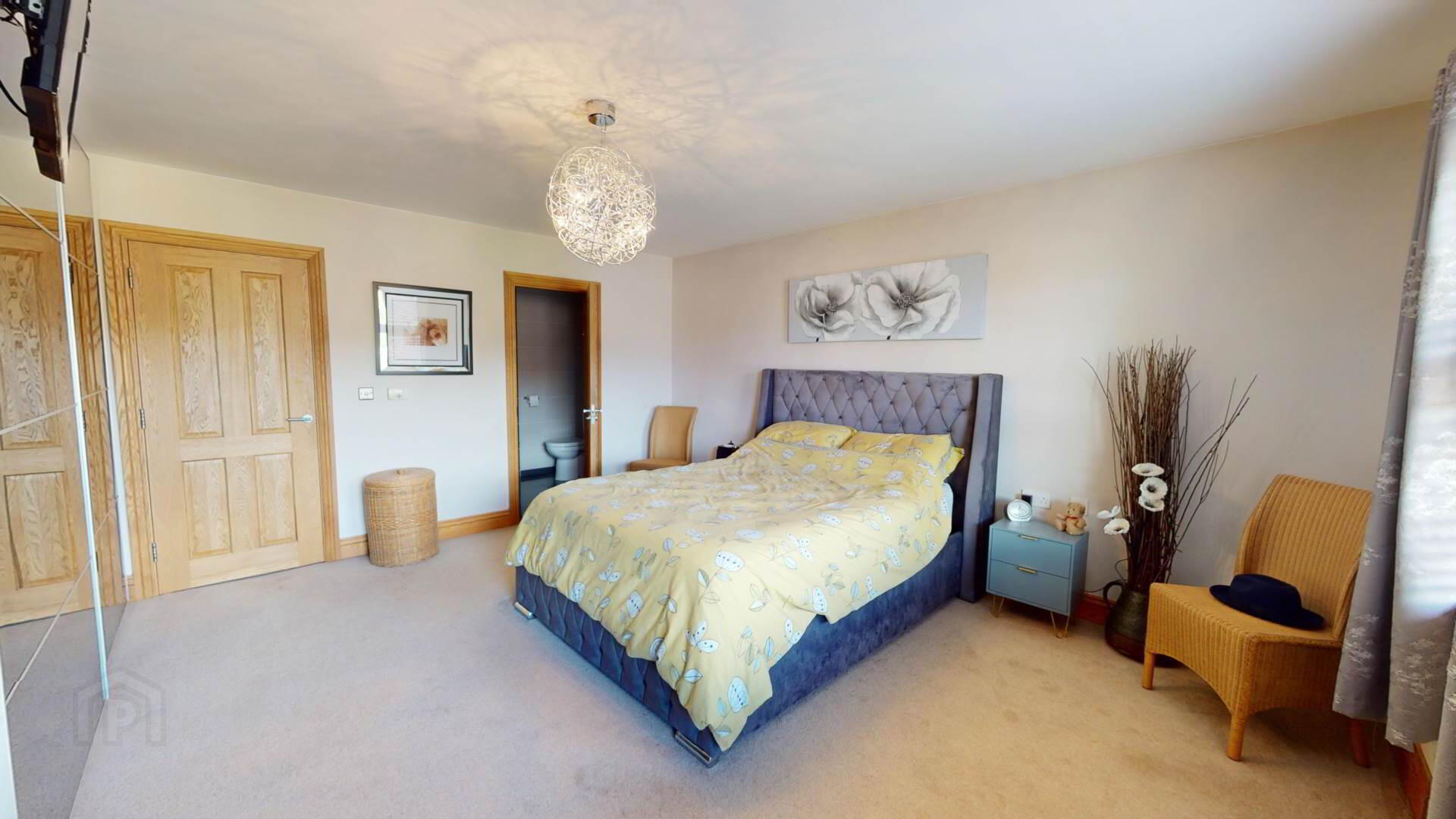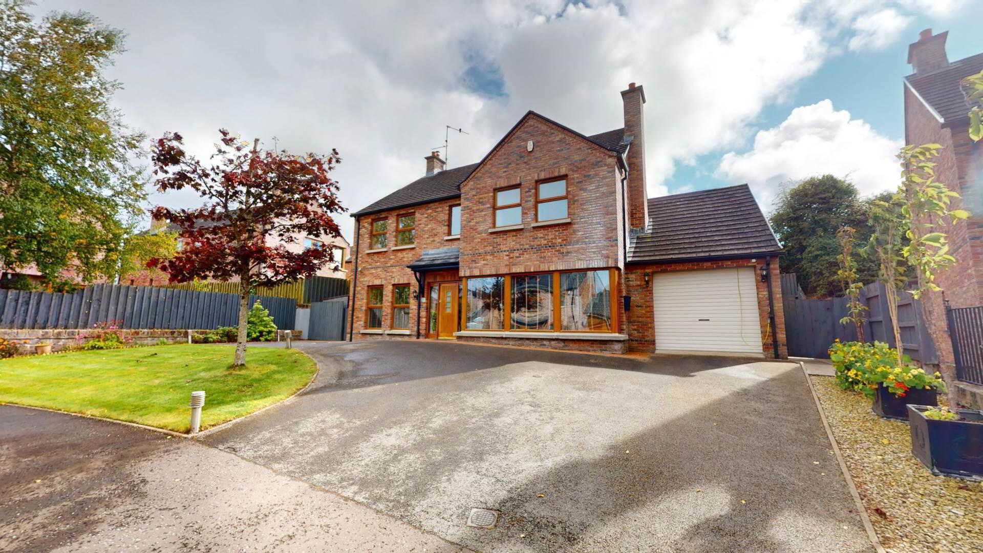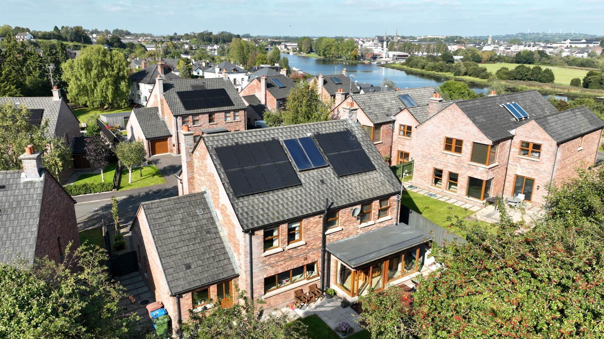 Set in Enniskillen`s exclusive, peaceful cul-de-sac, waliking from the town center passing by a marina, this five-bedroom high end home delivers modern comfort and energy efficiency. With an air-to-water heat pump, solar hot water, and solar panels, energy costs are slashed half the running costs covered through repayments.
