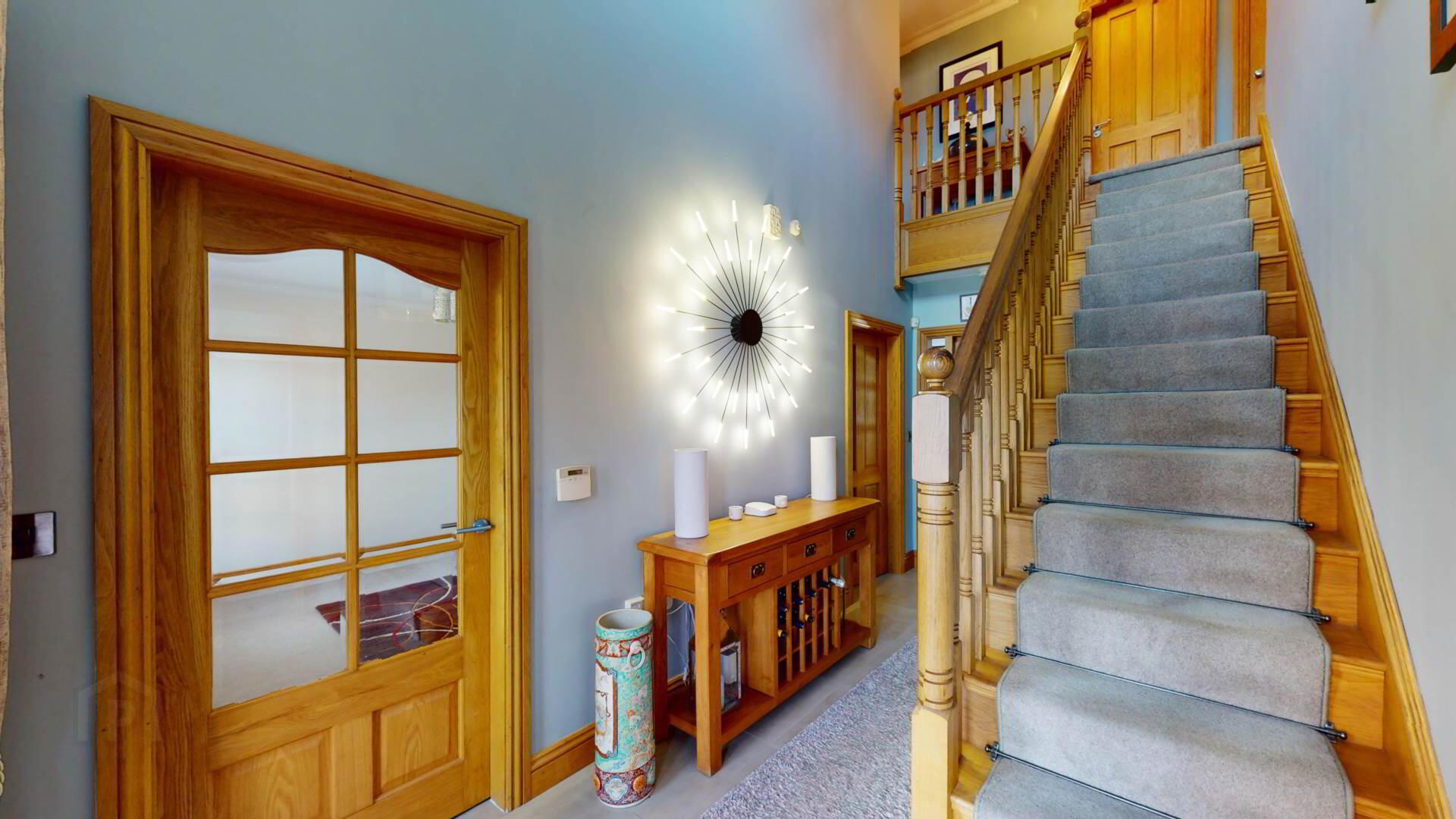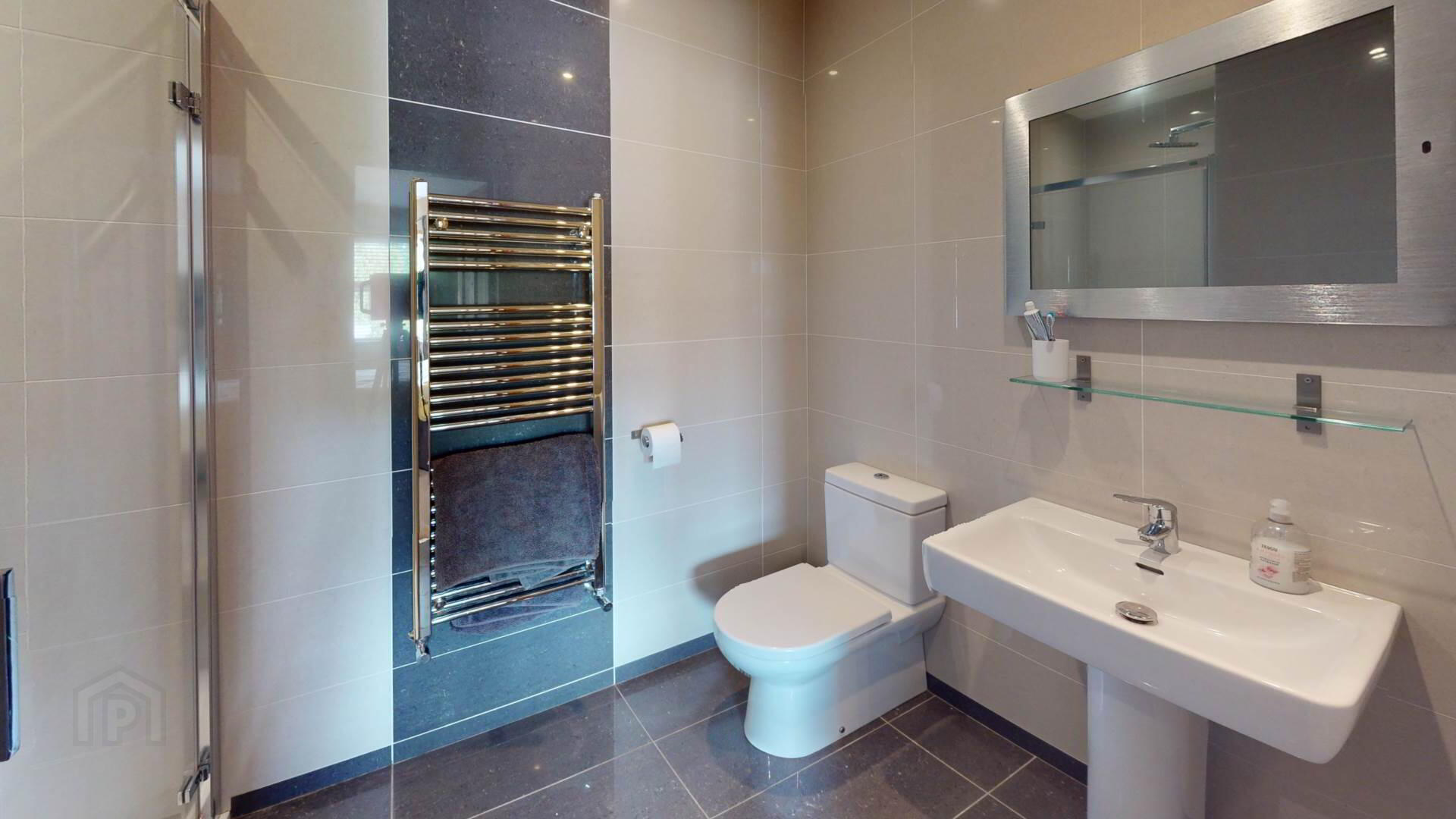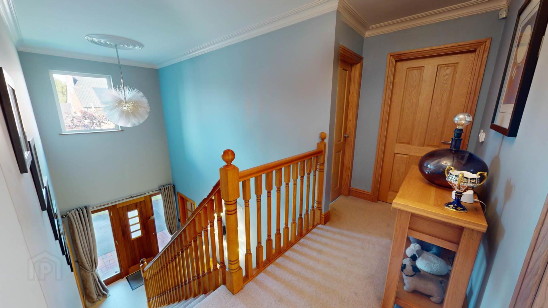 Set in Enniskillen`s exclusive, peaceful cul-de-sac, waliking from the town center passing by a marina, this five-bedroom high end home delivers modern comfort and energy efficiency. With an air-to-water heat pump, solar hot water, and solar panels, energy costs are slashed half the running costs covered through repayments.