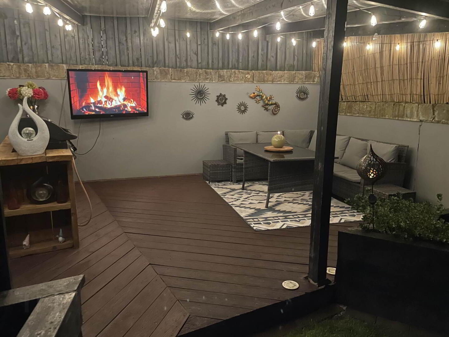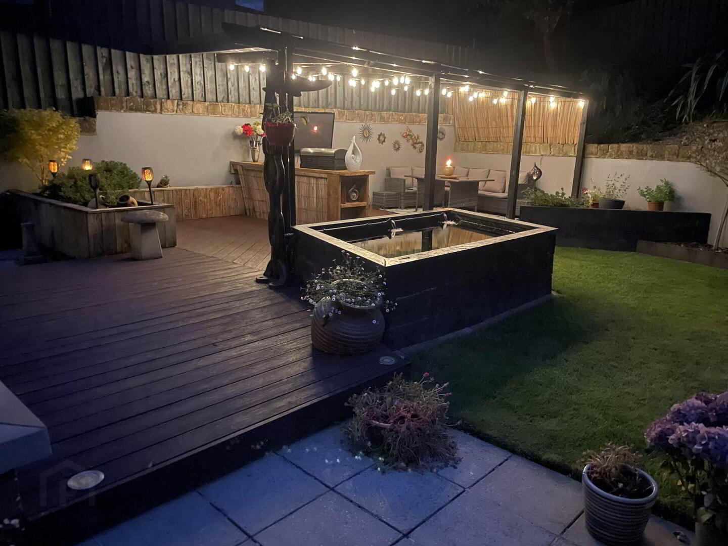 Outside, enjoy the covered powered patio area ideal for BBQs and evening relaxation listening to the water feature, suitable for fish.