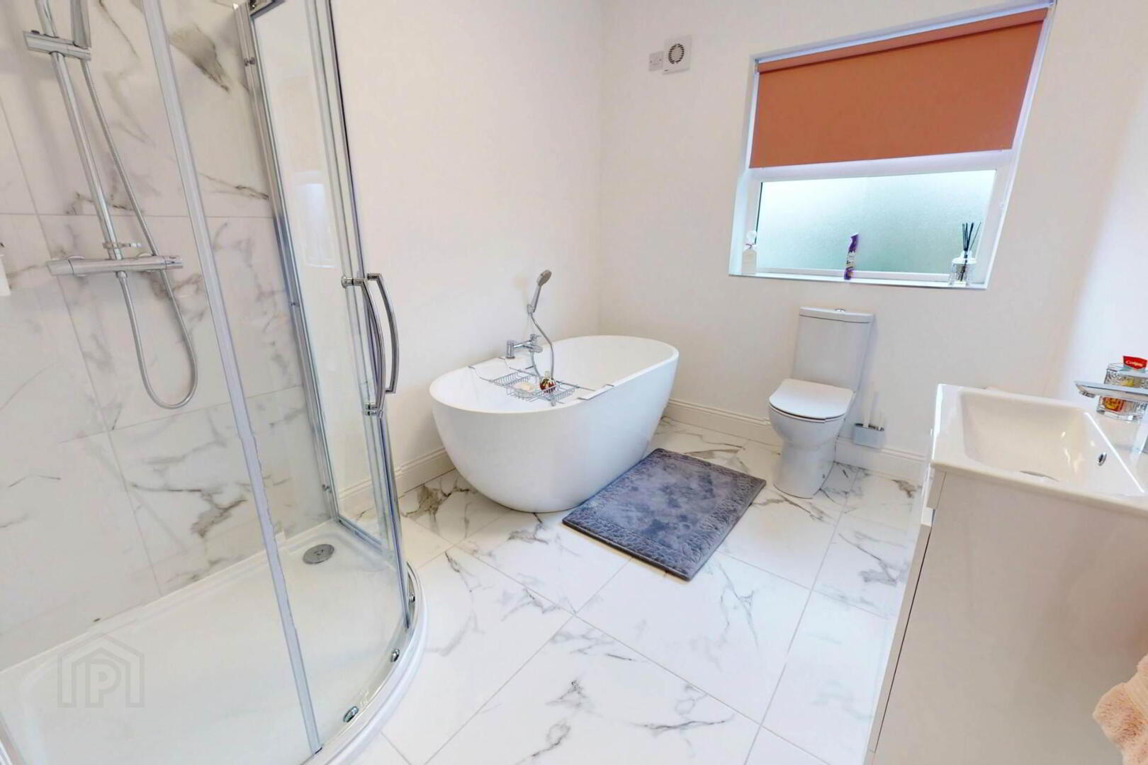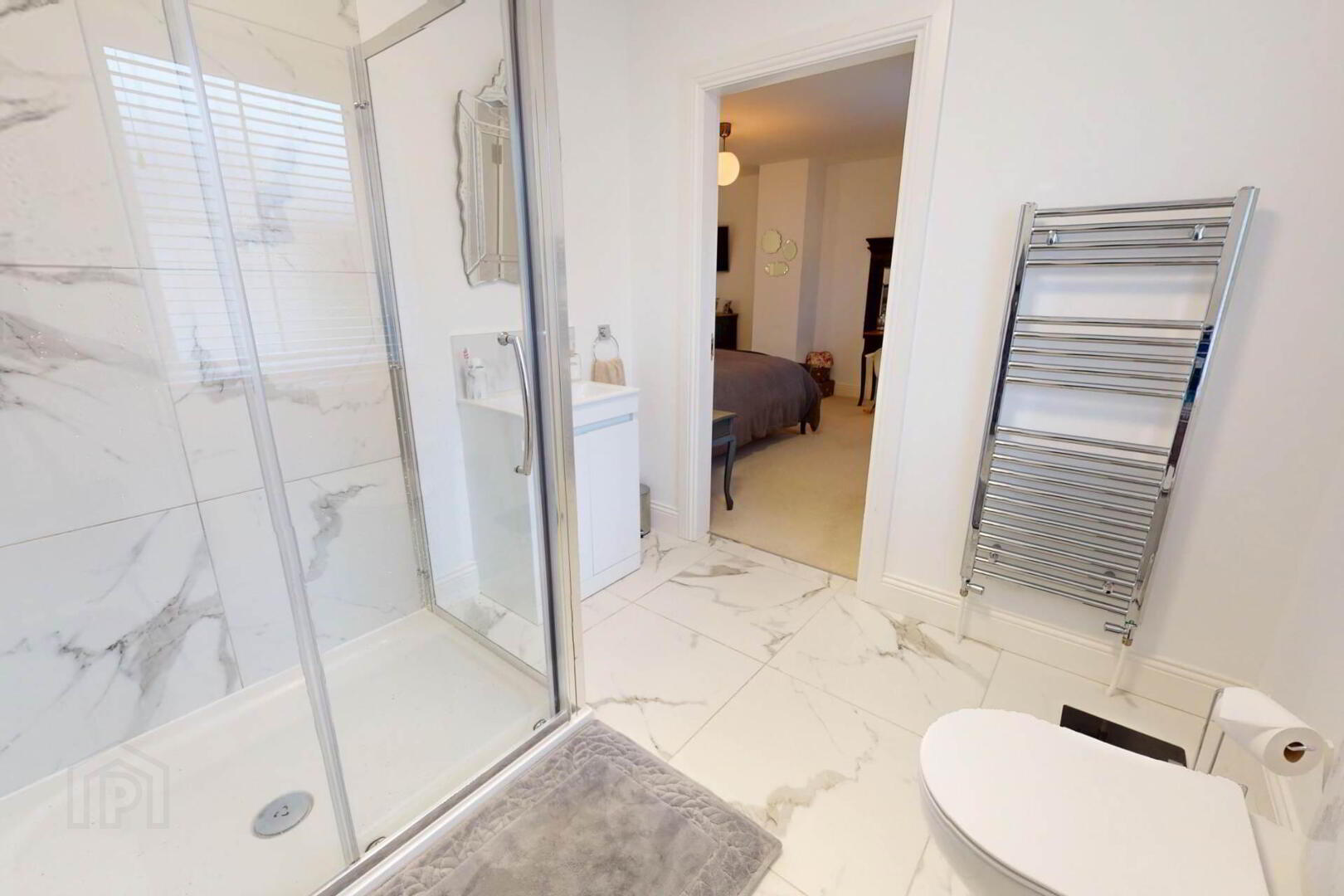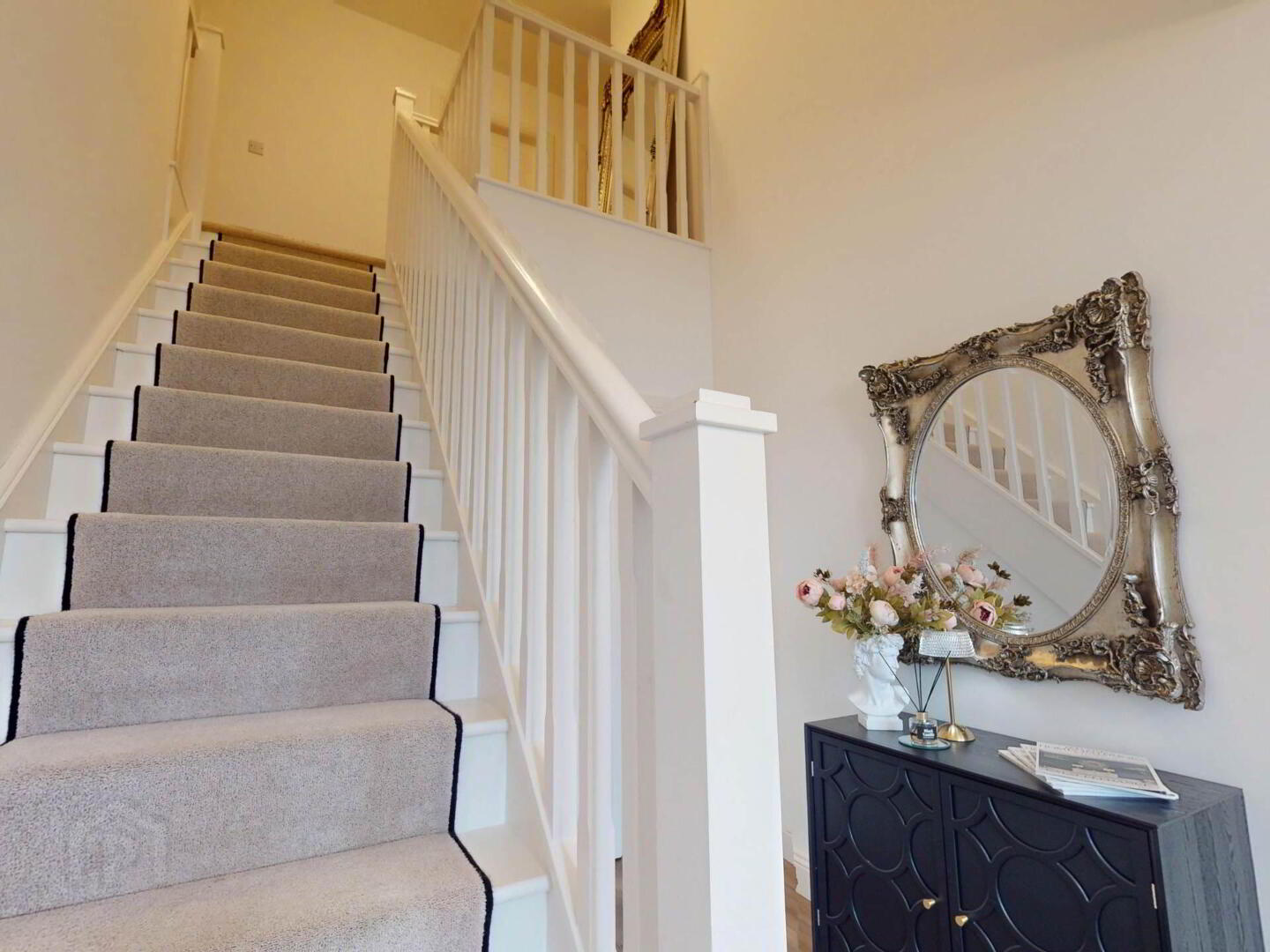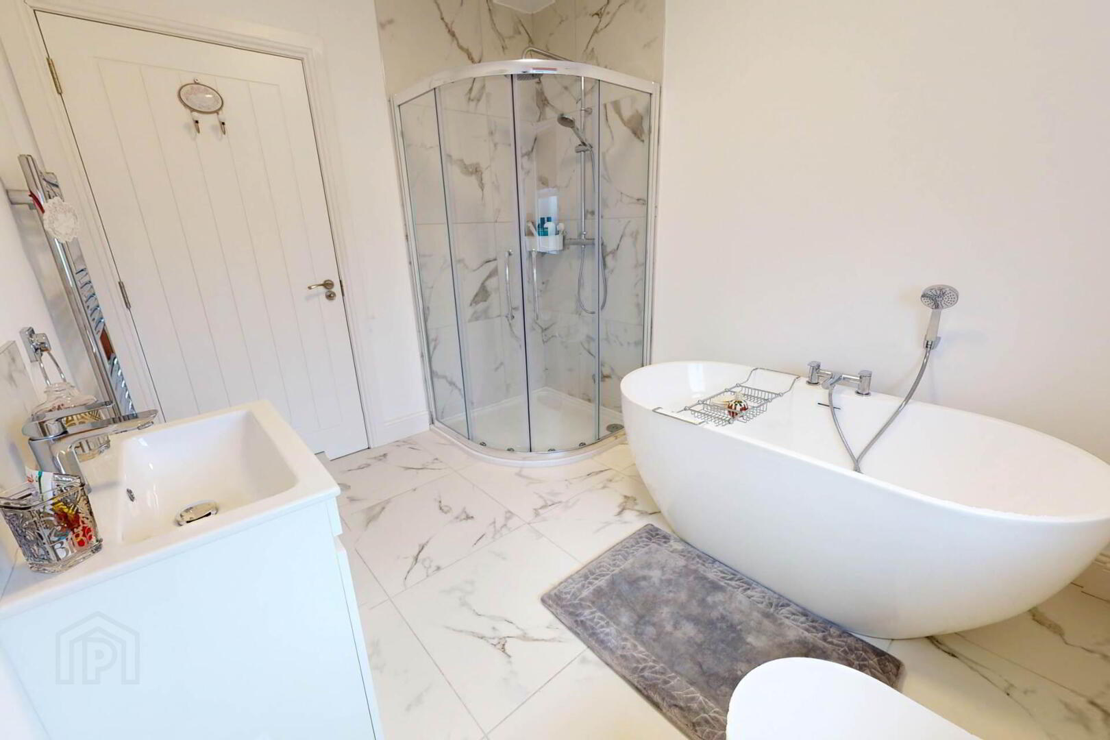 Upstairs, the master bedroom boasts a walk in wardrobe and ensuite, with a further ensuite bedroom and two additional well proportioned rooms. Every bathroom is finished with heated towel radiators, including a main bathroom featuring a standout freestanding bath.