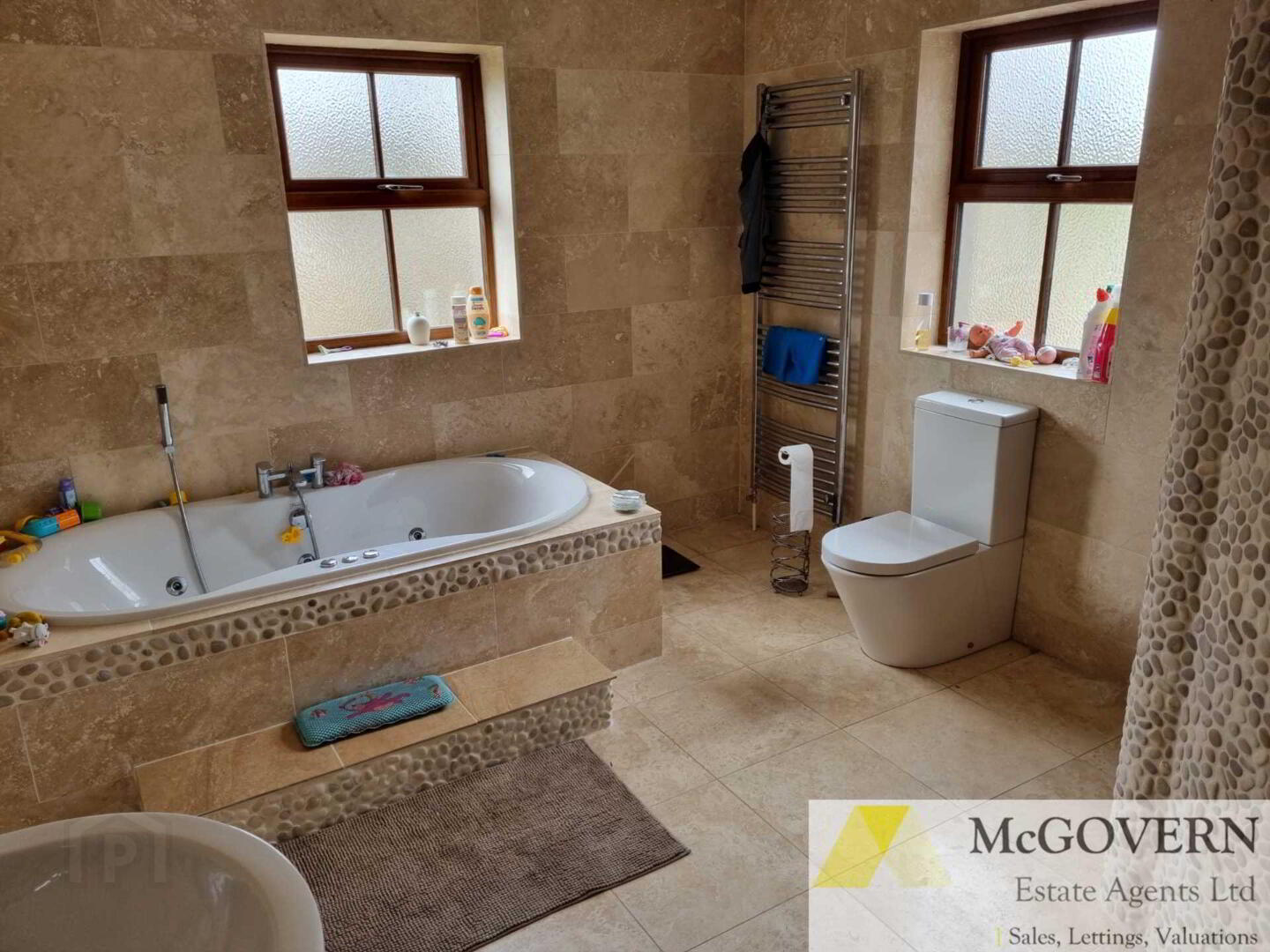 Tiled Flooring, Tiled Walls, WC, Wash Hand Basin, Jacuzzi Bath with Tiled Surround, Walk-In Power Shower, Heated Towel Rails;