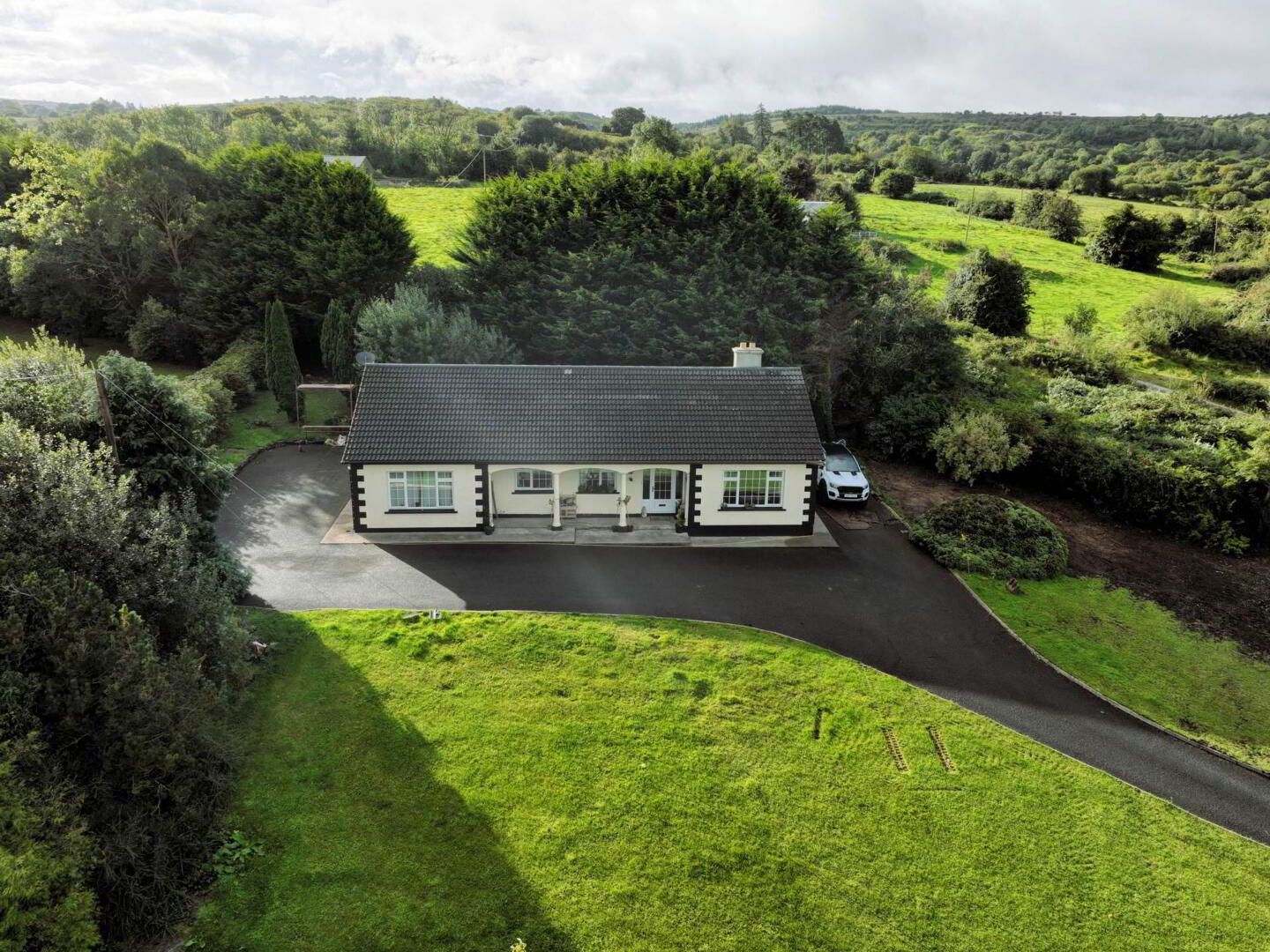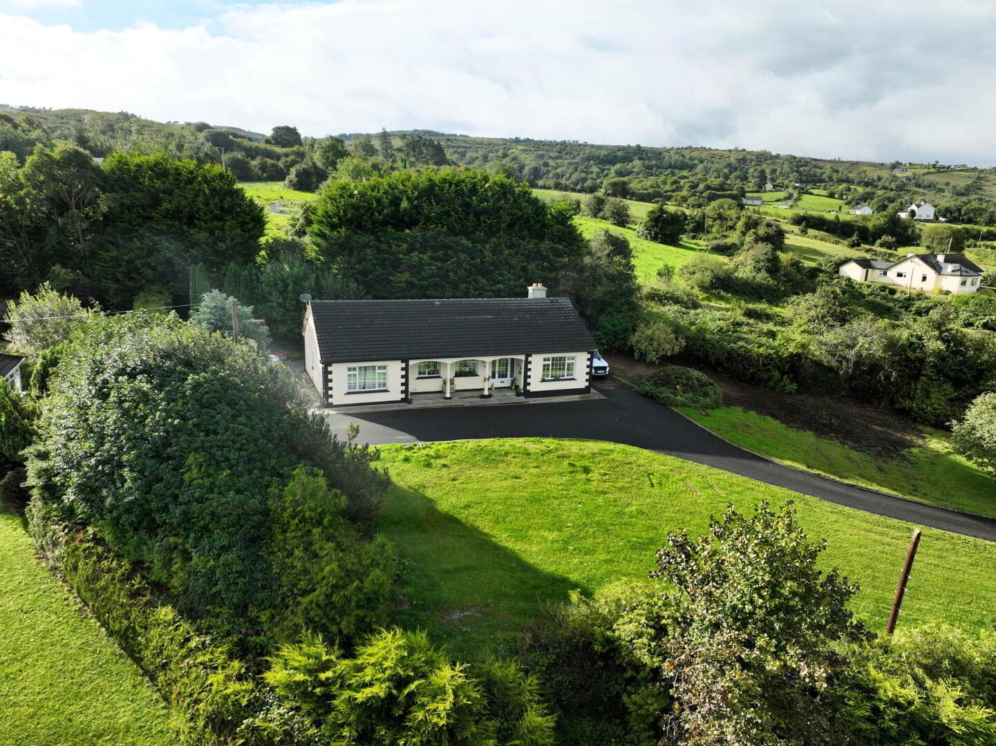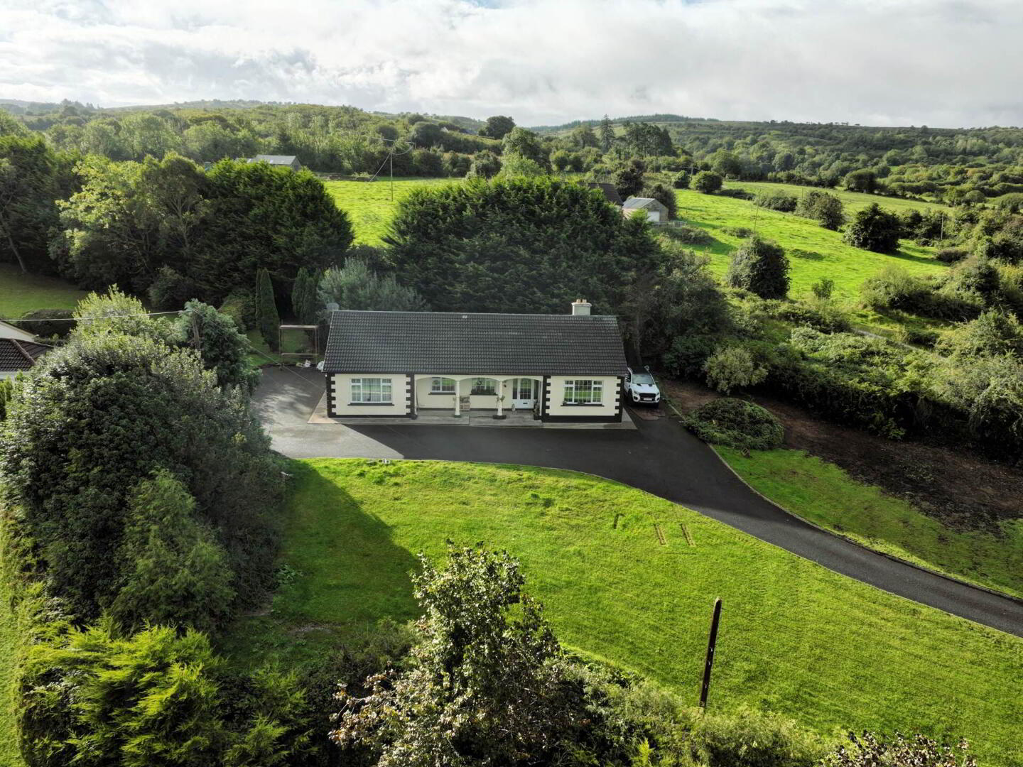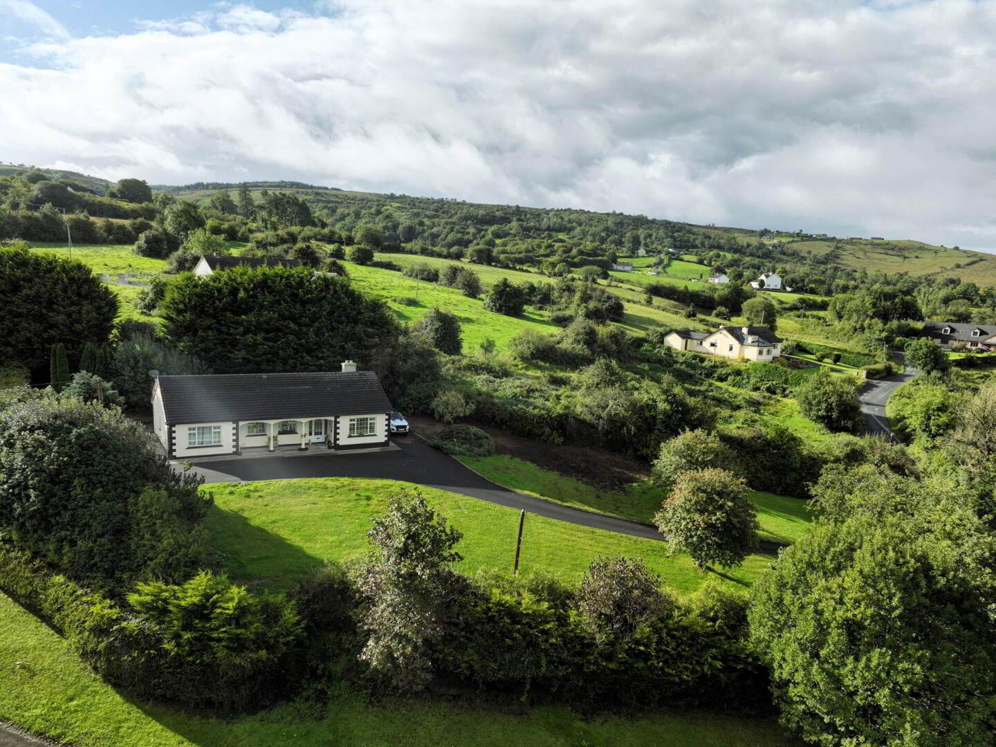 Nestled on the edge of Blacklion in a peaceful, elevated setting, this spacious four-bedroom bungalow enjoys sweeping views over the surrounding countryside and Upper Lough MacNean.