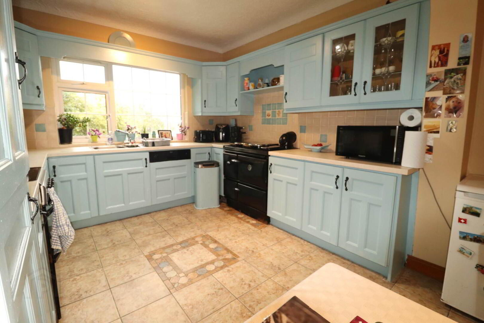 Inside, a bright front living room welcomes you in, while the open-plan kitchen/dining area to the rear features fully fitted units, a range cooker, integrated dishwasher, and double doors leading to the rear. A separate utility room adjoins for added convenience.