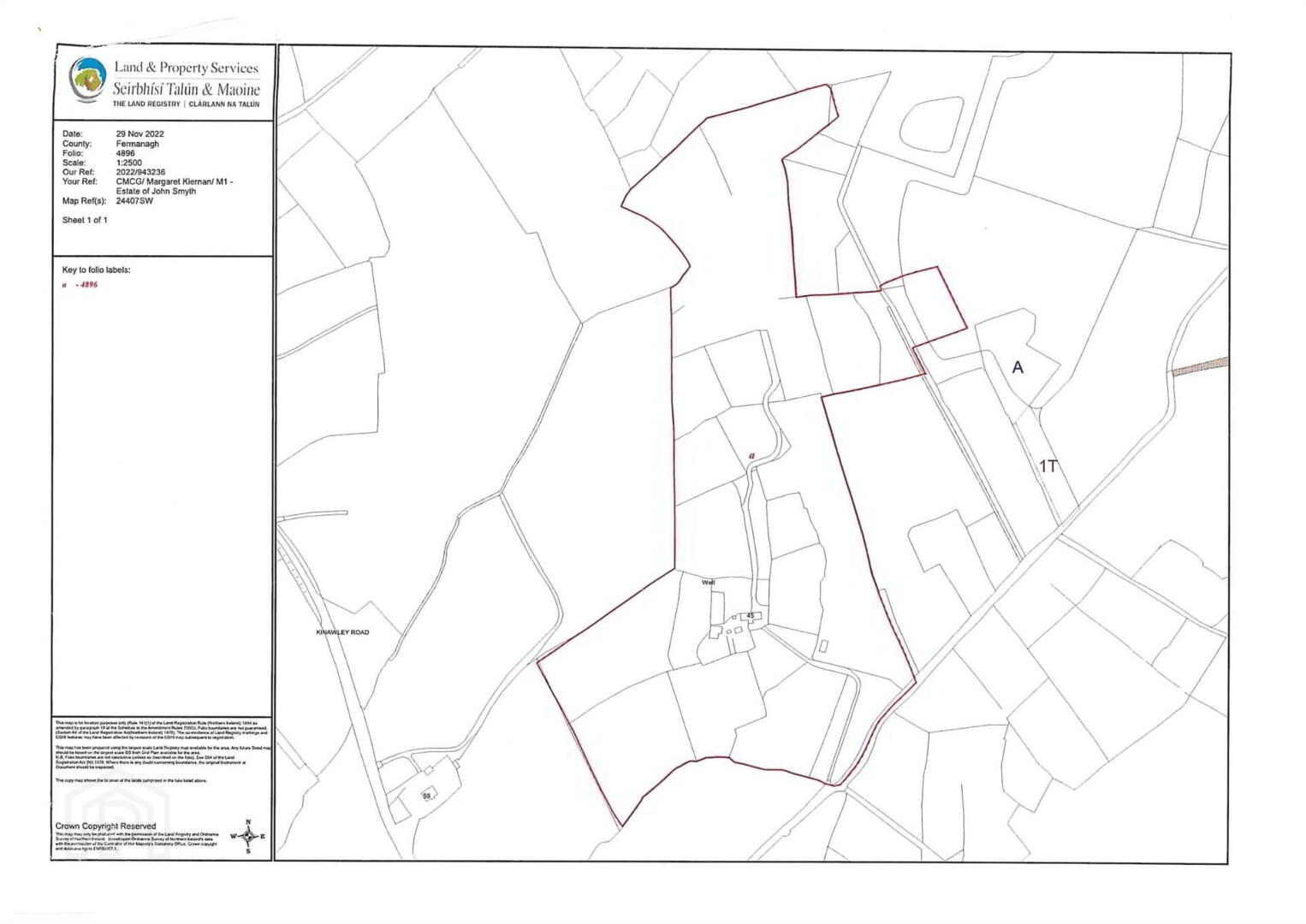 A well located block of land extending to approximately 25 acres, positioned just 300 yards off the main Kinawley Road via a shared lane. The lands are a mix of grazing and meadow, generally lying in fair to average condition, and offer a useful holding for agricultural or those seeking a rural site with future potential.